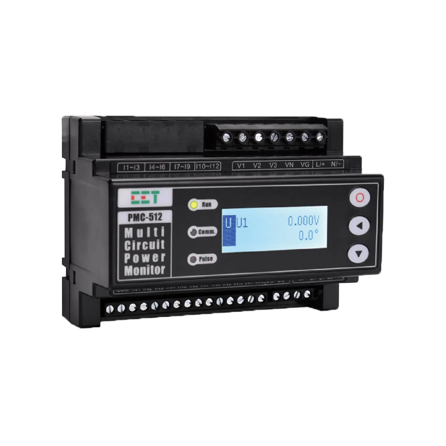 The PMC-512-A is CET's latest offer for the economical multi-circuit monitoring of Data Centers, Telecom Base Stations and Industrial & Commercial Buildings. Housed in a compact DIN Rail Mount enclosure, the PMC-512-A is perfectly suited for high-density metering applications. The PMC-512-A features quality construction with multifunction and high-accuracy measurements with an optional color touch-screen HMI that supports up to 32 devices simultaneously over an RS-485 network. The PMC-512-A comes standard with 12xDIs for status monitoring or pulse counting, 1xDO for control or alarming. The standard SOE Log records all setup changes, alarms and DI/DO operations in 1ms resolution. With dual RS-485 as standard feature supporting Modbus RTU, the PMC-512-A can easily be deployed in a stand-alone system with its Touch Screen HMI or simultaneously with a centralized monitoring and control system for an AC power distribution network.